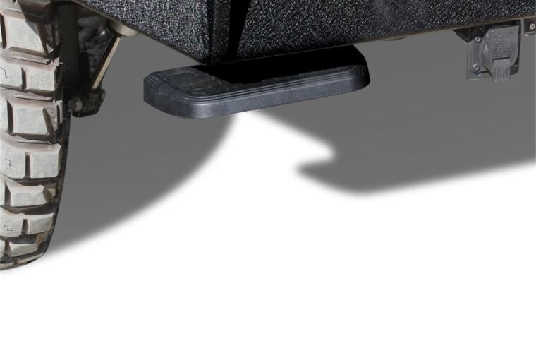 GO AHEAD AND STEP ON IT. BEDSTEP IS A REAL TIME SAVER. Not to mention knee and back saver. Strong and rugged, this non-slip, retractable bumper step quickly flips down with the nudge of a foot providing a faster, easier and safer way to load or unload your pickup?s cargo. Frame mounts under the rear bumper so it works even with an open tailgate or when towing.